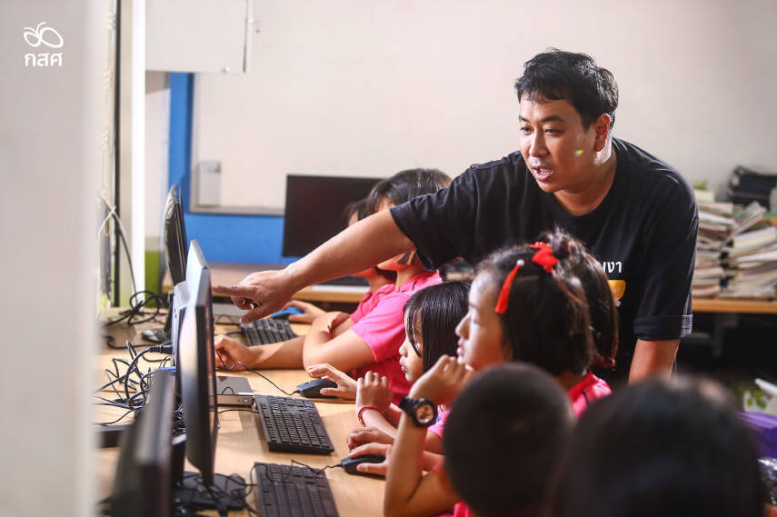“ถ้าครูรู้ว่าคอมพิวเตอร์ใช้ทำอะไรได้บ้าง เขาจะถ่ายทอดความคิดนั้นไปสู่เด็ก และออกแบบการเรียนรู้ให้เด็กได้ค้นคว้าด้วยตัวเองบ่อย ๆ ฉะนั้นเด็กจะไม่ได้พัฒนาแค่เรื่องทักษะดิจิทัล แต่คอมพิวเตอร์หนึ่งเครื่องมันสามารถพาเด็กคนหนึ่งไปที่ไหนก็ได้เท่าที่ความสามารถเขาจะไปถึง โครงการคอมพิวเตอร์เพื่อน้องจึงตั้งเป้าว่าทุกโรงเรียนต้องมีคอมพิวเตอร์ แล้วต้องมีคอมพิวเตอร์ประจำชั้นเรียนด้วย เพื่อให้เด็กทุกคนทุกชั้นได้ทดลอง ได้สัมผัสรู้จัก และใช้งานเป็น ไม่ใช่รอขึ้นประถมปลาย หรือรอเรียนในชั่วโมงคอมพิวเตอร์แค่สัปดาห์ละ 1-2 ชั่วโมง”
