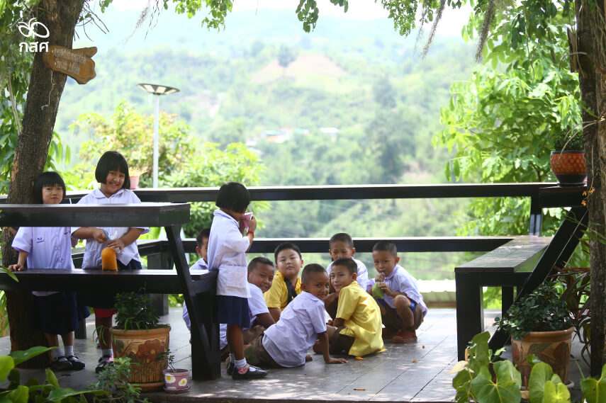 ก่อนขยายบริบทว่า โรงเรียนแห่งนี้เป็นแหล่งเรียนรู้ของนักเรียนจาก 3 หมู่บ้าน ที่เป็นกลุ่มชาติพันธุ์อาข่า 90% ไทใหญ่และจีนอีก 10% ในชุมชนเกษตรกรรมที่เด็ก ๆ อยู่กับผู้ปกครองซึ่งเกินครึ่งเป็นผู้สูงอายุ ด้วยคนหนุ่มสาววัยแรงงานส่วนใหญ่ แยกย้ายออกไปทำงานในพื้นที่อื่น ๆ กันเกือบหมด